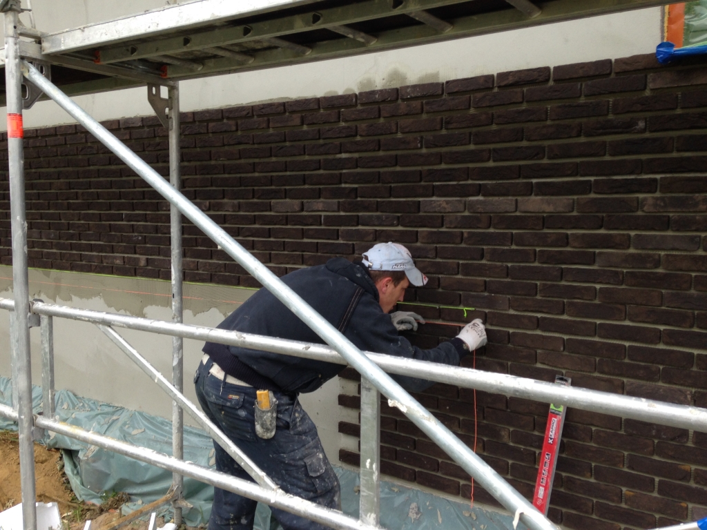 Gevelbekleding met steenstrips plaatsen